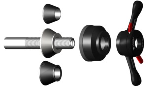 Быстрозажимная гайка ProGrip, которая имеет функциональный дизайн и изготовлена из легкого полиамида, обеспечивает оптимальную фиксацию колеса.
