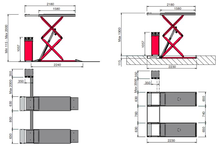 4 регулировочных винта ограничения хода для минимальной высоты платформ от пола и для получения идеально равных платформ в опущенном состоянии | |