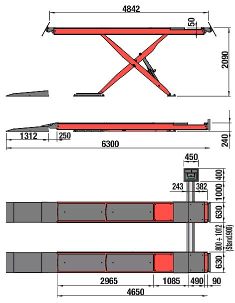 Во всех подъемниках этой серии передняя ось транспортного средства расположена в фиксированной точке подъема (где есть поворотные колеса), независимо от колесной базы автомобиля и без какой-либо дополнительной регулировки.