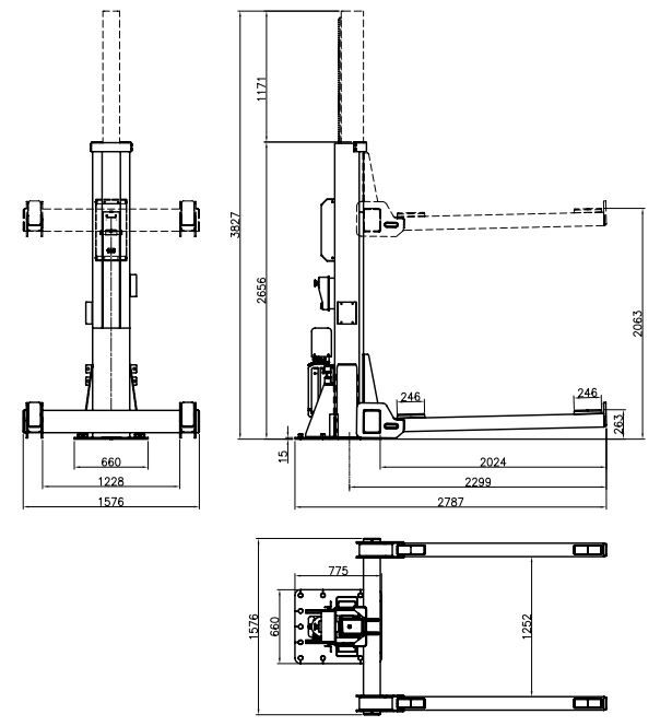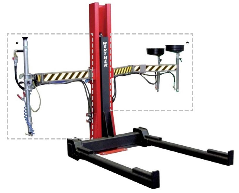 На подъемнике имеются специальные держатели для рукояток, на которых установлены вытяжные щупы и воронки (рукоятки поставляются в качестве опции)
