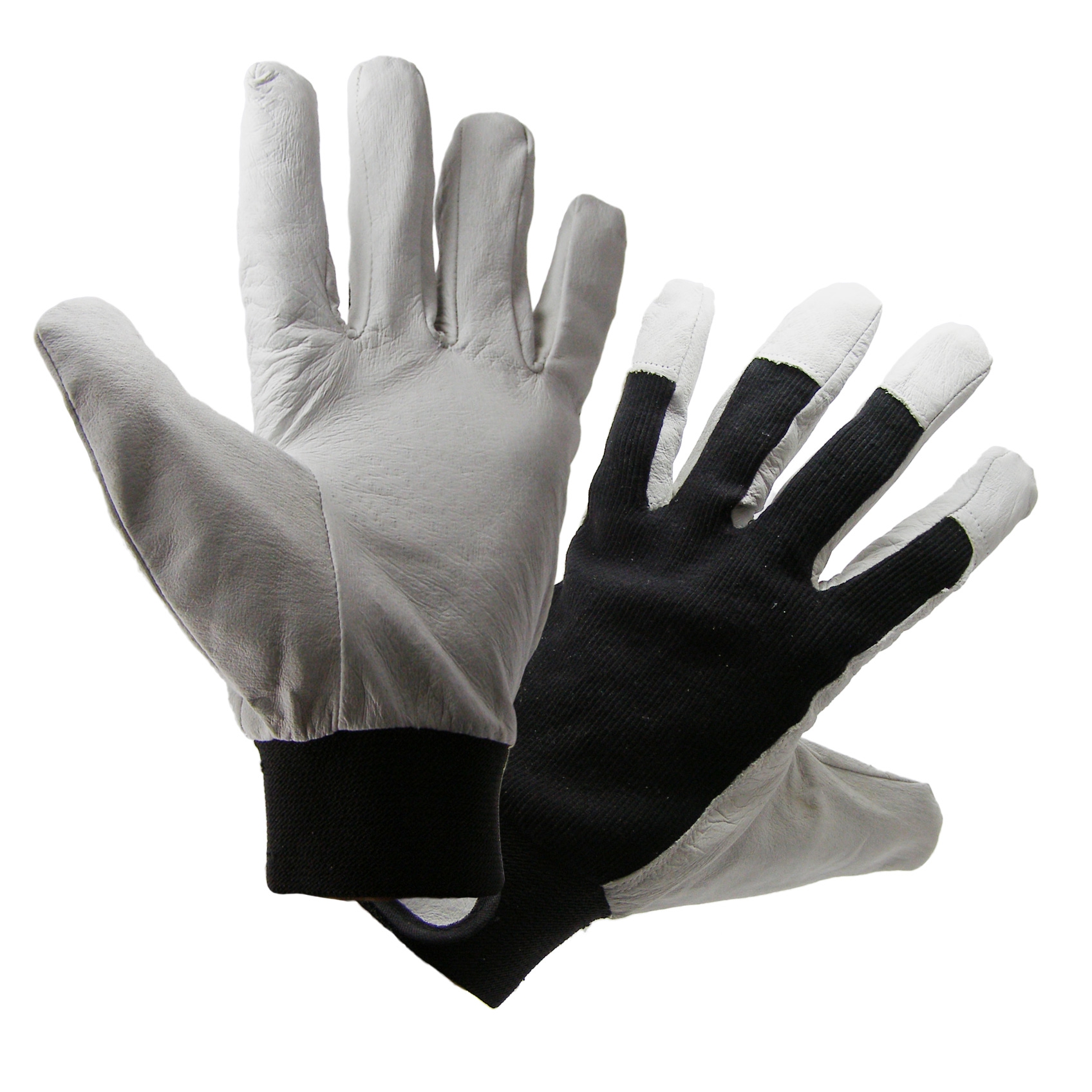 Перчатки кожаные рабочие "Элит" изготовлены из тонкой эластичной и очень прочной кожи окрашеной в светло-серый цвет в комбинации с трикотажным материалом чёрного цвета. Для лучшей фиксации вшита липучка белого цвета. Для большего комфорта и улучшения воздухообмена внутри перчаток вшита подкладка. Размер 10,5".