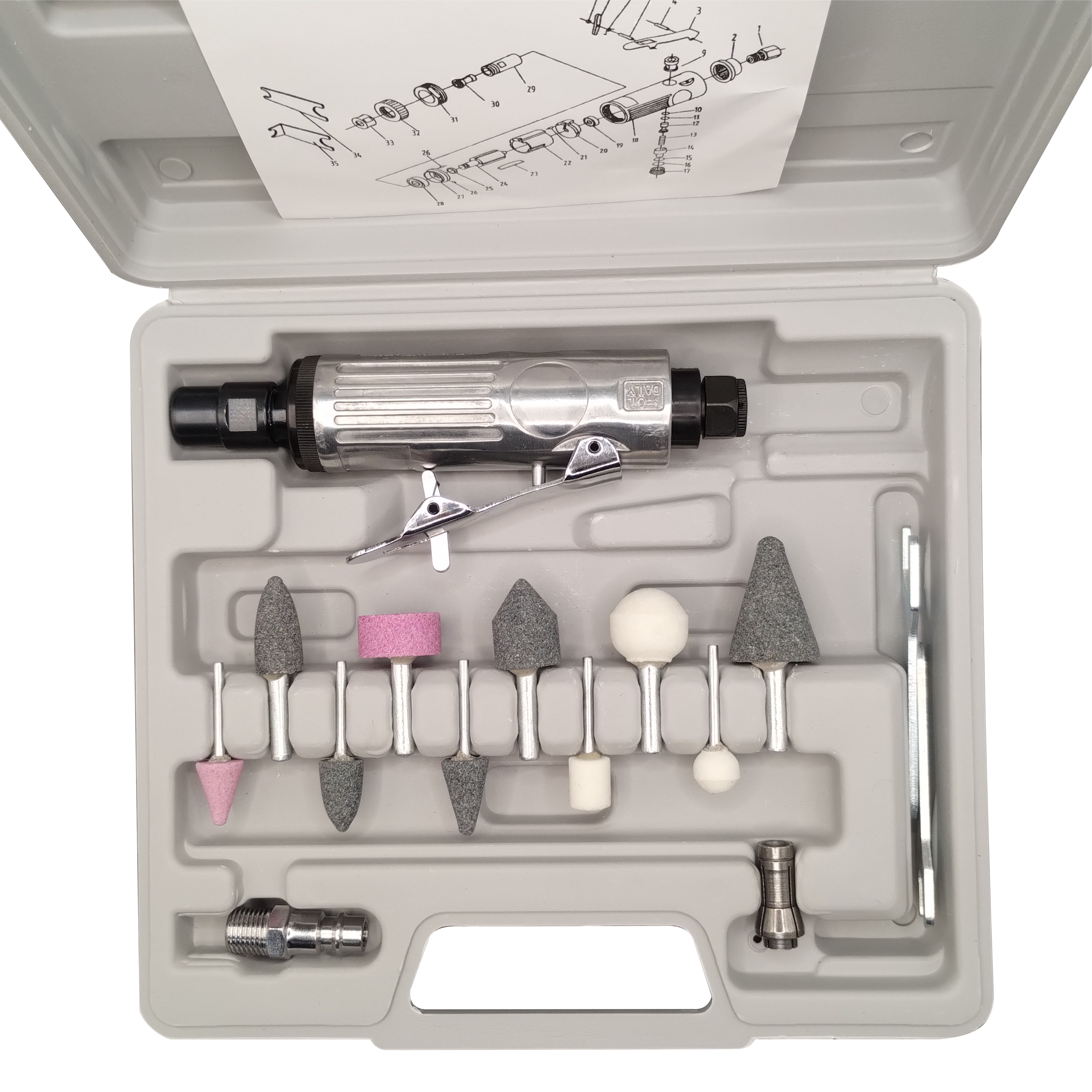 Пневматическая зачистная машинка Air Die Grinder КИ 25000 об, с комплектом шлифовальных камней (1шт.+15 шт.)
