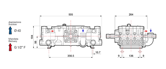 Конфигурация с 6 поршнями скольжения и керамическим цилиндром. Анодированная алюминиевая торцевая часть насоса с двойным анодированием и обработкой методом катафореза. Запатентованная система защиты от износа поршня масла. Всасывание с одинарным соединением.