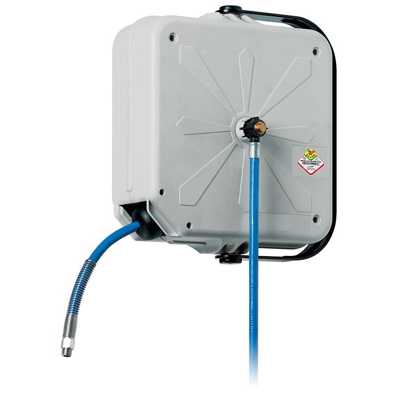 Поворотная закрытая катушка из ABS с поворотной опорой для шлангов воздух-воды 20 бар с 11 м шлангом ø 6x10 мм