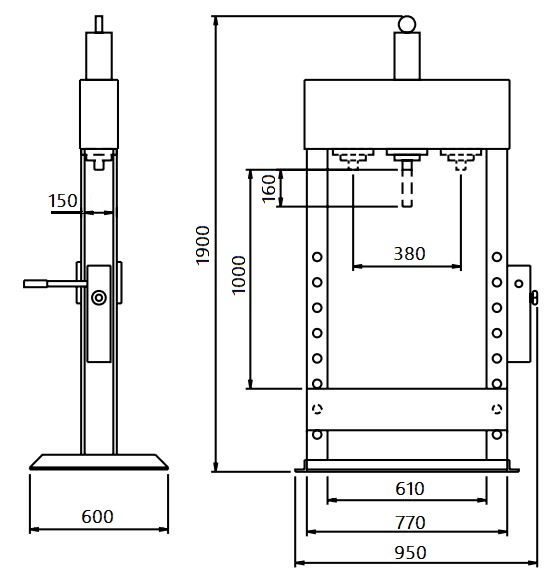 Напольный гидравлический пресс с подвижным поршнем и усилием 20 тонн.