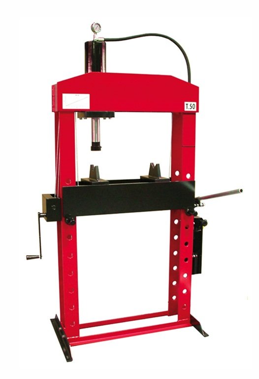 Напольный гидравлический пресс с лебедкой рабочего стола, подвижным поршнем и усилием 50 тонн.