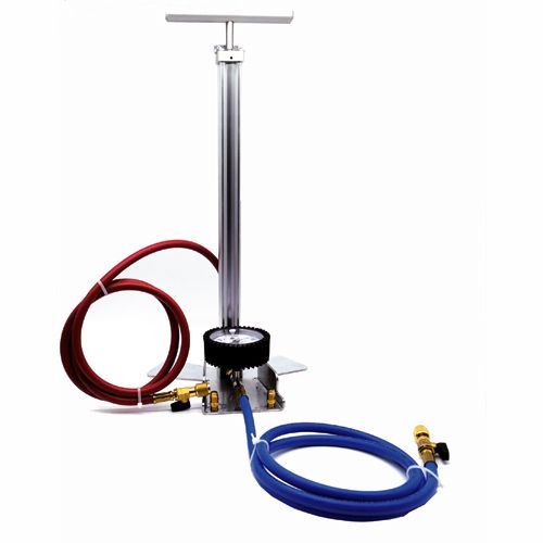 Оснащен 2 гибкими шлангами 1/4” SAE 1500 мм с клапаном, красный и синий.
