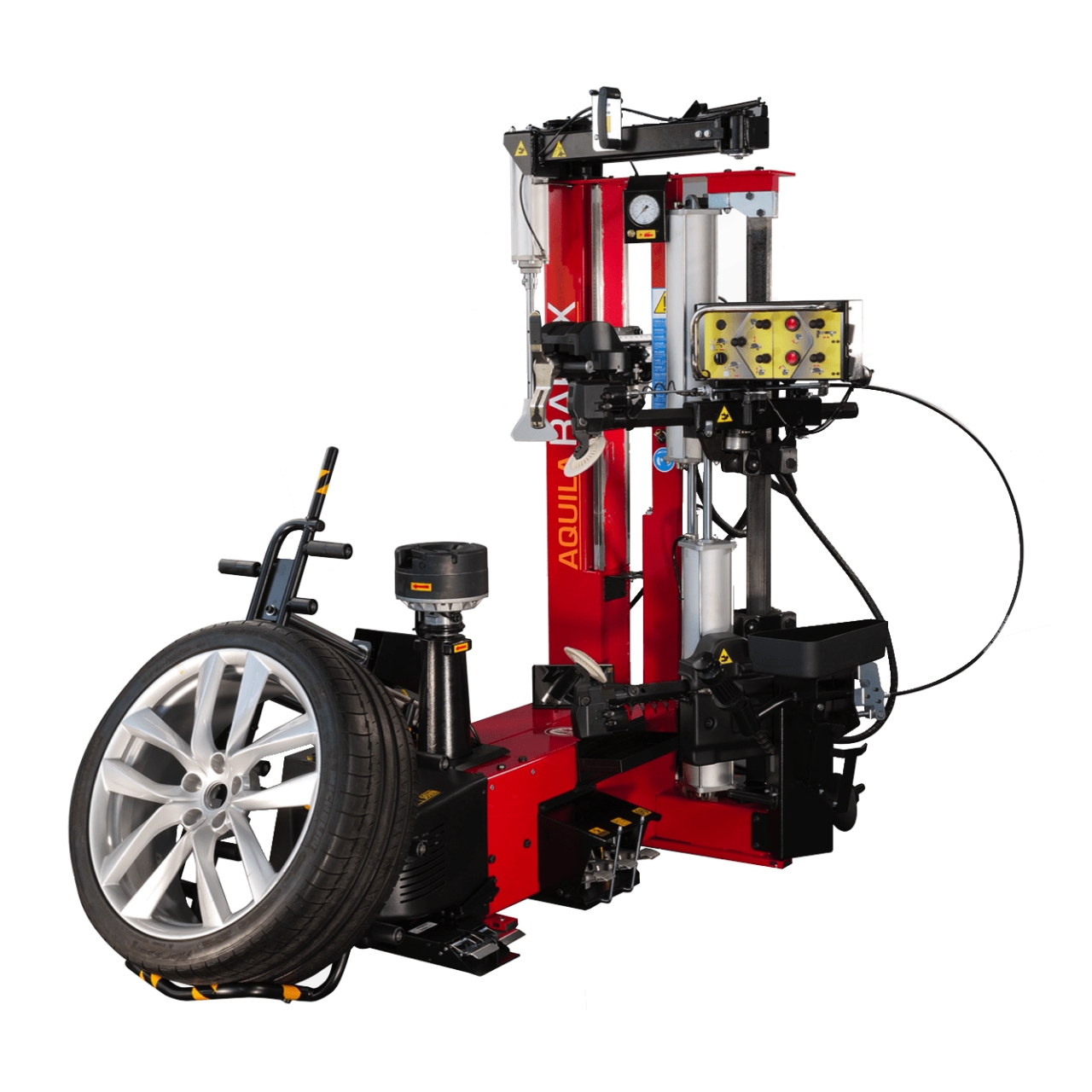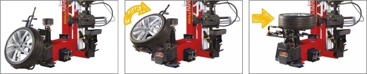 AQUILA RAPAX - это новый автоматический шиномонтажный станок, работающий «БЕЗ МОНТИРОВКИ», для легковых, внедорожных и легких коммерческих автомобилей с колесами до 28 дюймов. Инструмент для монтажа и демонтажа основан на рабочей технологии AQUILA TORNADO, благодаря которой рабочий инструмент никогда не касается обода и уменьшается нагрузка на шину.