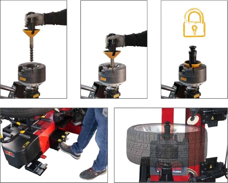 - Автоматический зажим колеса с эффективной, быстрой и простой пневматической системой