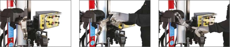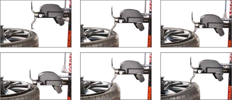 Радиальное позиционирование этого инновационного инструмента осуществляется с помощью консольных команд. Инструмент с ручным вращением для ускорения рабочих операций. При выполнении вращения инструмент автоматически будет в правильном радиальном положении. Рабочий узел, предназначенный для демонтажа, имеет запатентованную пружинную систему для облегчения входа инструмента между диском и шиной без какого-либо риска для самой шины.