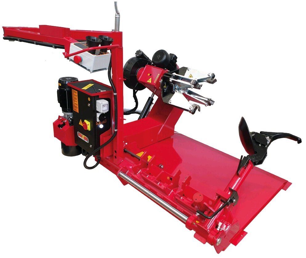 Полуавтоматический электрогидравлический шиномонтажный станок для колес грузовых автомобилей и автобусов.