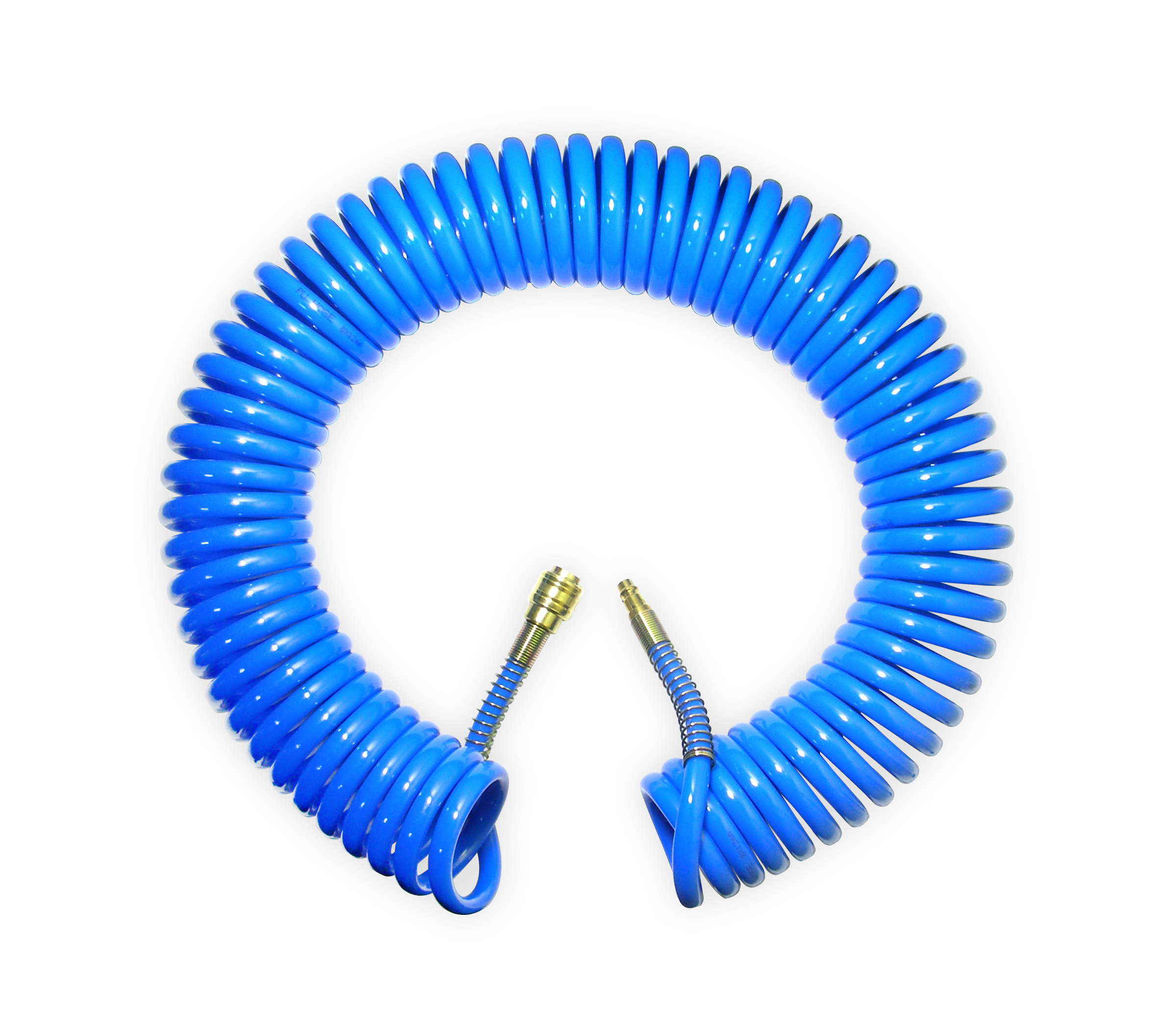 Шланг спиральный полиуретановый размером 8 x 12 мм, длина 15 м, давление 10 бар с быстроразъемными соединениями