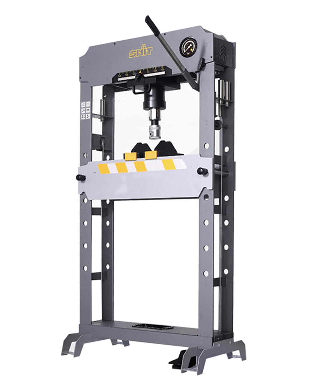 Напольный пневмогидравлический пресс с лебедкой рабочего стола, подвижным поршнем и усилием 50 тонн.