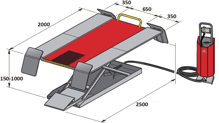 - Ручной зажим переднего колеса с многократным позиционированием на подъемной платформе