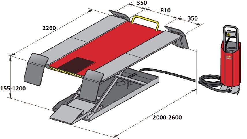 - Ручной зажим переднего колеса с многократным позиционированием на подъемной платформе