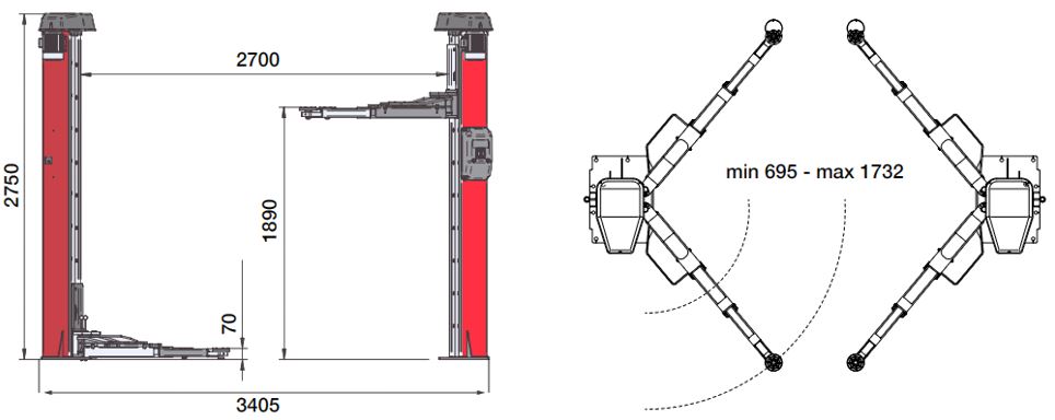 Подъемник TITAN P 240 EX с грузоподъемностью 4 тонны, специально разработанный для работы как с небольшими автомобилями, как SMART, так и с длинномерами, как Mercedes Sprinter. Минимальная высота подъемных рычагов составляет всего 70 мм, чтобы безопасно работать с автомобилями с особо низким кузовом. Он оснащен 4 удлиненными четырехступенчатыми симметричными рычагами и двумя двигателями (по одному для каждой колонны), управляемыми электронной картой для управления синхронностью привода двух колонн.