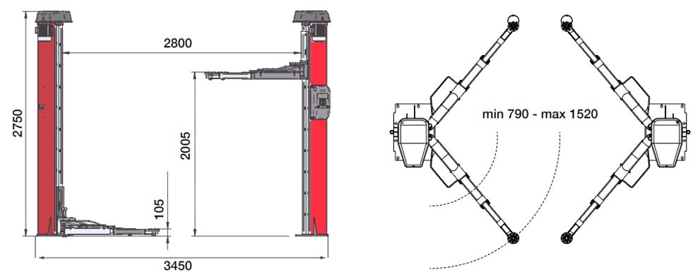 Подъемник TITAN P 250 EC с грузоподъемностью 5 тонн, специально разработан для подъема фургонов и бронированных лимузинов, имеющих особый вес. Он оснащен 4 длинными трехступенчатыми симметричными рычагами и двумя двигателями (по одному для каждой колонны), управляемыми электронной картой для управления синхронностью привода двух колонн. Благодаря системе автоматической непрерывной смазки винтов и гаек значительно сокращается техническое обслуживание. Подъемник оснащен автоматическим предохранительным устройством, срабатывающим при чрезмерном износе винта несущей гайки.