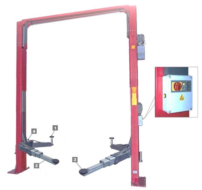 Двухстоечный электрогидравлический подъемник с 4-секционными опорными рычагами