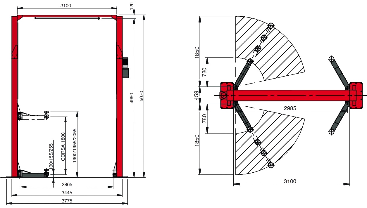 Подъемник TITAN 255 VXL управляется гидравлическим контуром типа Master/Slave с автоматическим перемещением двух кареток во время каждого цикла подъема. Благодаря этой схеме подъемник TITAN 255 VXL особенно надежен, прост в установке и не требует механических регулировок после первого монтажа (между колоннами отсутствуют металлические тросы).