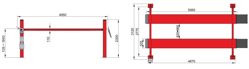 Четырехстоечный подъемник TITAN PI 441 B имеет электрогидравлический привод и включает в стандартную комплектацию: