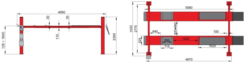 Достижение низкой минимальной высоты земли было приоритетом в разработке подъемника с платформами для развала-схождения TITAN PI 443 B. Специальные решения были использованы для создания подъемников с максимальной грузоподъемностью 4000 кг вместе с минимальной высотой земли только 126 мм.