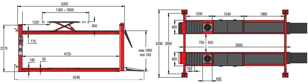 Подъемник со встроенным подъемником второго уровня для развала-схождения TITAN PI 453 LT имеет большие платформы, позволяющие поднимать большинство транспортных средств. Расстояние между стойками 2950 мм обеспечивает полную совместимость с 3D-стендами развала-схождения.