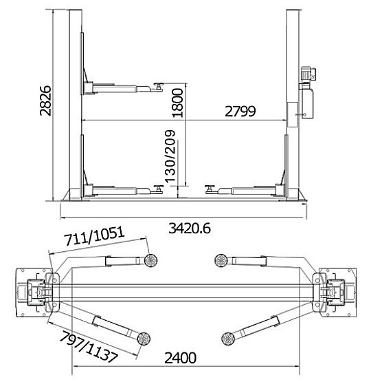 Двухстоечный электрогидравлический подъемник с нижней синхронизацией
