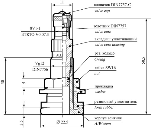 ETRTO No. | Посадочный диаметр, мм | A, мм | Максимальное давление, бар | Усилие на зажимной гайке, Н·м |