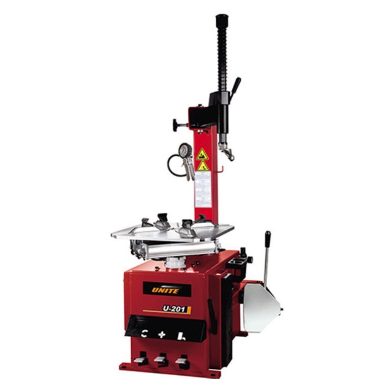 Стандартный полуавтоматический шиномонтажный станок для монтажа и демонтажа колес легковых автомобилей и легких грузовиков.