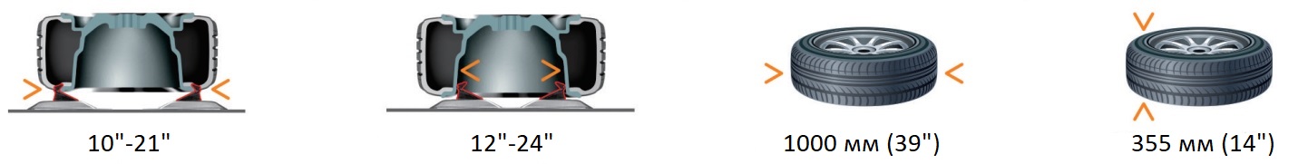 Полуавтоматический шиномонтажный станок с поворотным рычагом для колес с ободом от 12" до 24" (максимальный диаметр колеса 1000 мм или 39", максимальная ширина колеса 355 мм или 14").