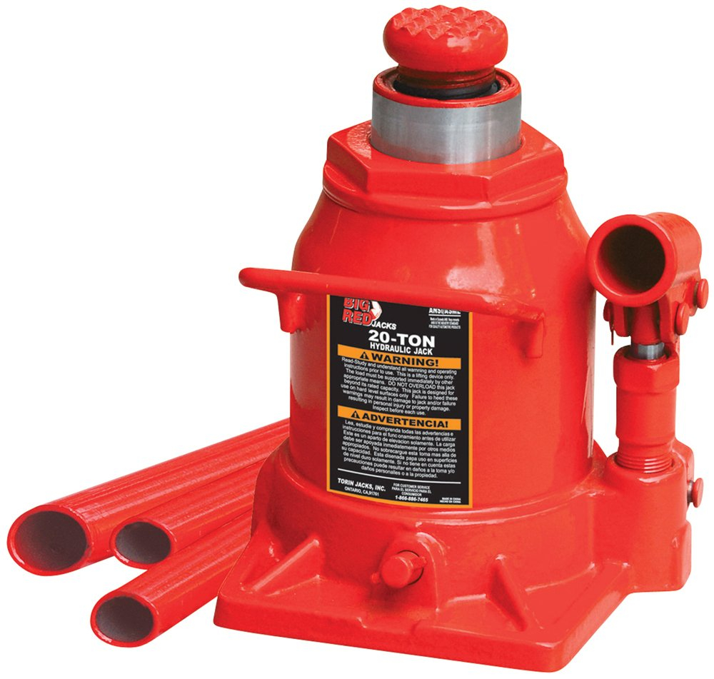 Гидравлический низкопрофильный бутылочный домкрат с винтовым штоком грузоподъемностью 20 тонн.