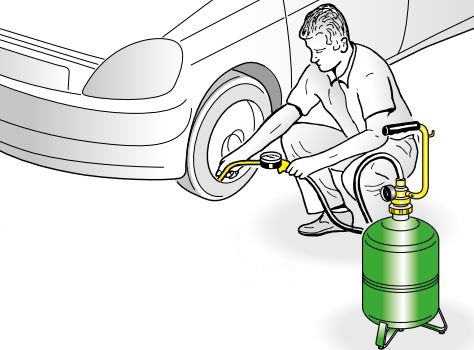 Контроль і накачування шин виконується за допомогою пістолета, оснащеного манометром Ø 60 мм зі шкалою 0-10 бар