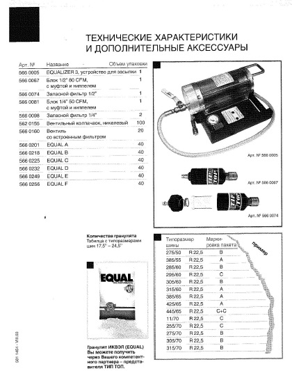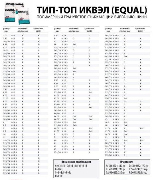 Постійно оновлюваний список усієї кількості типорозмірів для легких вантажівок / вантажних шин, можна знайти на www.equalchart.com
