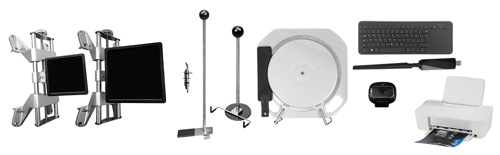 Робочий кабінет, промисловий комп’ютер із операційною системою Windows, 43" TFT-монітор, кольоровий принтер, WIFI-клавіатура, динаміки, веб-камера, WIFI USB-адаптер, чотири 4-точкові затискачі 12"-24" з універсальними кігтями та мішенями, пара преміальних поворотних столів, балка з камерами та автоматичним переміщенням, фіксатор педалі гальма та блокування керма, програмне забезпечення для регулювання коліс та бази даних для легкових автомобілів.