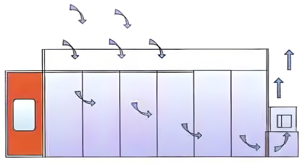 У фарбувальній камері з напівнижньою тягою використовуються найпередовіші технології та наукові дослідження, щоб максимізувати переваги руху повітря завдяки техніці напівнизхідної тяги, яка дала назву моделі камери.