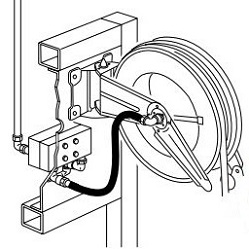 Фронтальний стенд (сервісна стійка) для шести роздавальних шлангових котушок з ємним резервуаром