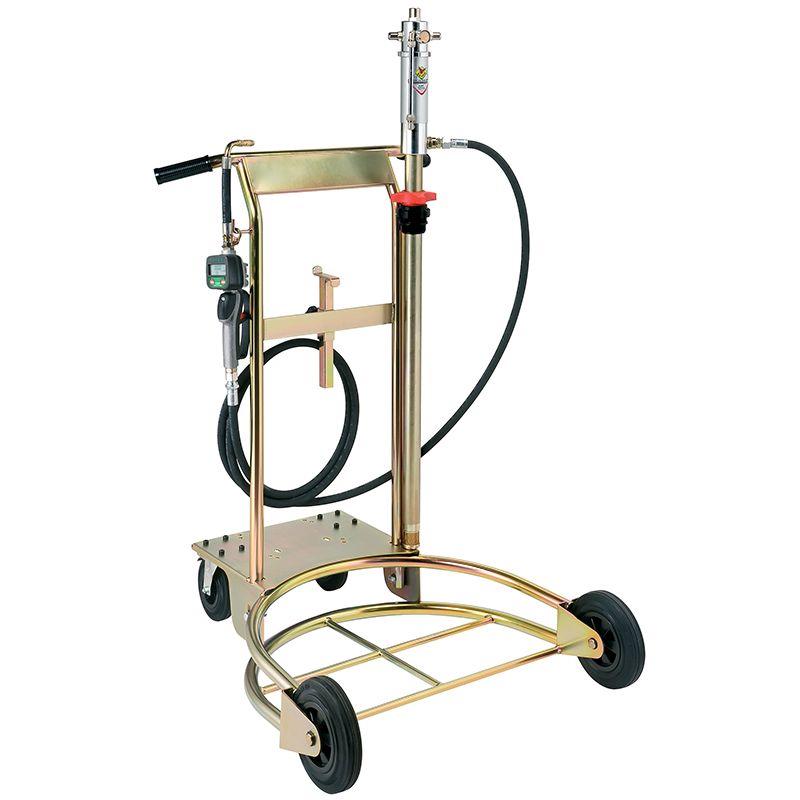 Ідеальна комбінація для подачі (заправки) оливи в будь-яких робочих умовах. Дуже зручний візок оснащений пристосуванням для закріплення бочки (180-220 кг), регульованою бічною опорою для закріплення додаткових пристроїв, колесом з гальмом.