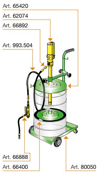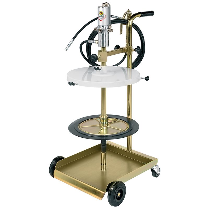 Ідеальна комбінація для подачі (заправки) консистентного мастила в будь-яких робочих умовах. Візок невеликого розміру оснащений 2 закріпленими колесами та 2 поворотними колесами, завдяки чому дуже зручний в управлінні. Він оснащен опорою для насоса та призначена для ємностей середнього розміру.