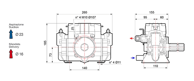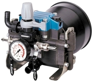 Частини в контакті з рідиною виготовлені з анодованого алюмінію, стійкі до дії хімічних речовин, що використовуються в сільському господарстві. Конфігурація з 2 мембранами, з акумулятором тиску. Напірне з'єднання з гаком для прямого з'єднання з насосом шланга або вузла управління.