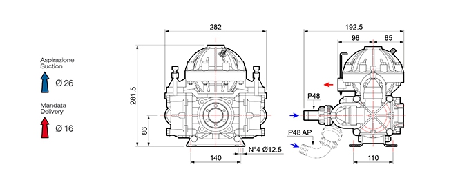 - Напірне з'єднання з гаком для прямого з'єднання з насосом шланга або вузла управління.
