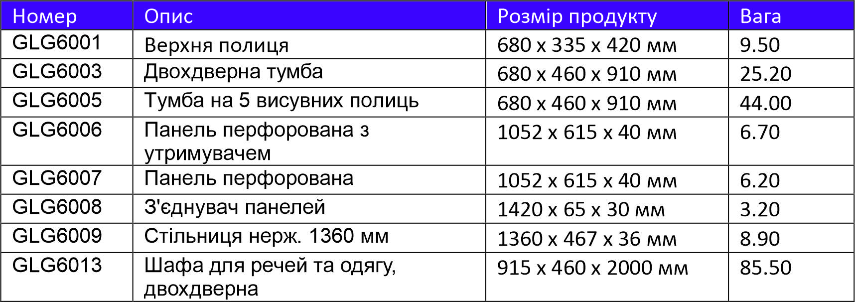 Модульний набір меблів для обладнання майстерень GLG6000E