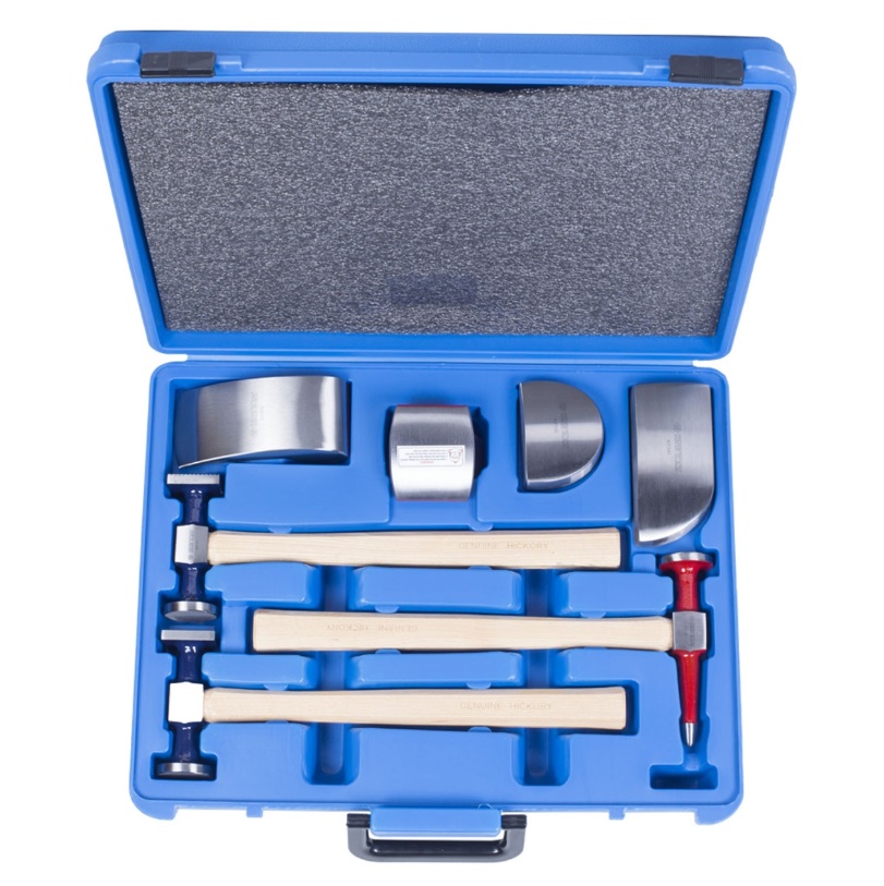 До складу набору входять рихтувальні підтримки та молотки різної форми та конфігурації: