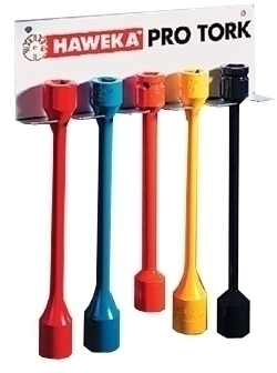 У набір входять торсіонні ключі різного кольору. Кожен колір відповідає певному розміру головки колісного болта/гайки і моменту затяжки болта/гайки, рекомендованому виробником автомобіля.