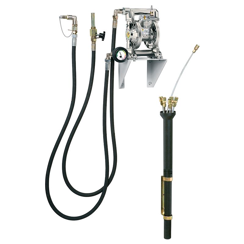 Настінна система відкачування оливи з приводом від пневмонасоса дозволяє виконувати відкачування за допомогою щупів, що додаються. Пневматичний насос зі спеціальними прокладками з NBR призначений для відкачування таких рідин, як: різні оливи, охолоджуюча рідина, тощо. Настінна установка дозволяє підключити їх до вмонтованої системи зливу рідини, що відкачується безпосередньо в цистерну для зберігання.