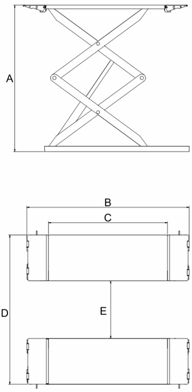 Повнопідйомний ножичний підйомник для поверхневого монтажу