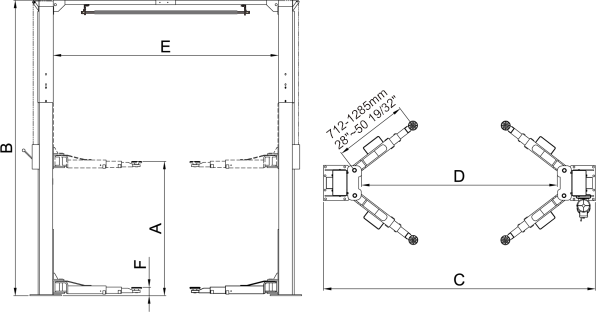 Одноточкове розблокування обох колон з однієї сторони | Гідравлічні циліндри з прямим приводом |