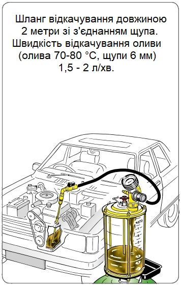 УВАГА: НЕ ВИКОРИСТОВУВАТИ ДЛЯ ВІДКАЧУВАННЯ ОЛИВИ З ГАЛЬМІВНИХ СИСТЕМ, ПАЛИВА, ЗАЙМИСТИХ ТА КОРОЗІЙНИХ РІДИН