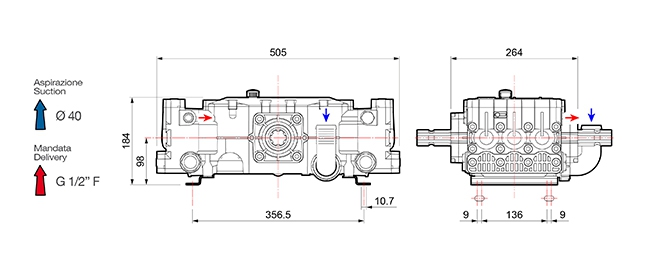 Використання на переносних і пересувних розпилювачах і атомізаторах, на великих системах з горизонтальними перекладинами і в побутових і промислових системах. Частини в контакті з рідиною виготовлені з анодованого алюмінію, високо стійкого до дії корозії. Конфігурація з 6 зануреними керамічними поршнями. Механізми працюють в масляній ванні. Захист точки відбору потужності за замовленням.