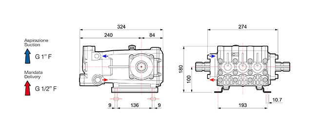 Використання на переносних і пересувних розпилювачах і атомізаторах, на великих системах з горизонтальними перекладинами і в побутових і промислових системах. Частини в контакті з рідиною виготовлені з анодованого алюмінію, високо стійкого до дії корозії. Конфігурація з трьома зануреними керамічними поршнями. Механізми працюють в масляній ванні. Захист точки відбору потужності за замовленням.