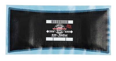 Ремонтний пластир для довговічного ремонту радіальних шин. Завдяки унікальному клеючому шару, а також застосуванню спеціально розроблених для нього розчинів-каталізаторів марки РЕМА ТІП ТОП, радіальні пластирі можуть застосовуватися як в технології гарячої, так і холодної вулканізації.